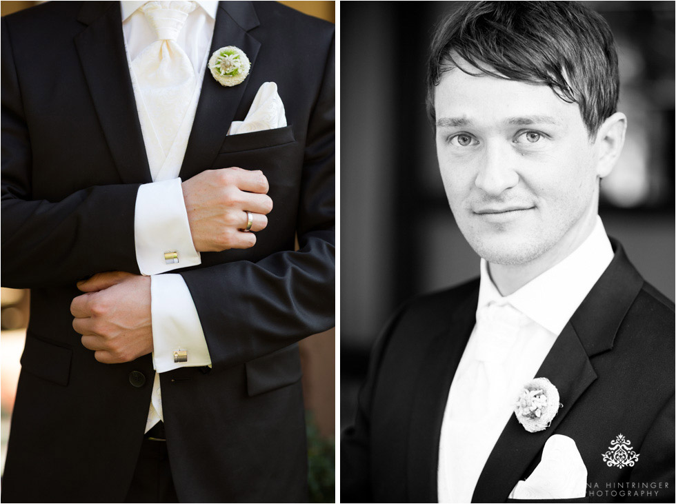 We are really blessed with our wedding couples! This time we want to thank Hansjörg from Atelier Rosengarten from the bottom our hearts for recommending us to Saskia and Martin from Germany. Without his recommendation we never had met these two lovebirds and their wonderful families. Atelier Rosengarten did an excellent job with the floral arrangements, they incorporated Edelweiss and created a perfect mixture of up-to-dateness and tradition. It was such a pleasure being part of Saskia and Martin`s wedding day with so many emotions and tears of joy. Even I had teary eyes and my hands were shaking a bit during their wonderful civil ceremony at the Zillertaler Regionalmuseum. It`s always great to see when a couple, madly in love, is promising to share the rest of their lives together. Saskia was blown away as they left the Museum after the ceremony and there were a view suprising guests - their closest friends travelled to Tyrol to be part of their big day! A Ferrari 360 Spider was their bridal car and they enjoyed the incredible sound of the engine on their ride to the venue of the coffee break at an elevation of 1.040 meters, you should not miss this stunning view. Once again this season we were lucky with the weather, even though it was already October we all enjoyed a wonderful warm and sunny day. So it was just perfect for Saskia as she wanted to have her wedding in the garden of the Landgasthof Linde since she was a kid. The autumn had colored the leafes in yellows and reds and the wine growing all over the place was just gorgeous. And check out ther lovely wedding theme: `All the way with you, happy companions`.