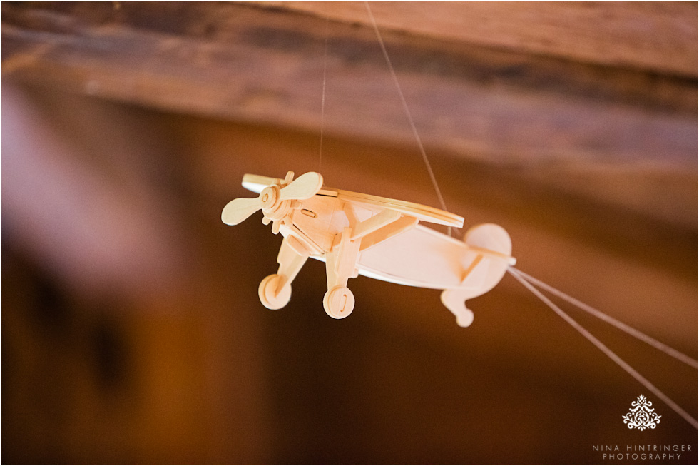 A pilot falls in love with a stewardess and finally they get married and live happily ever after - that sounds like a fairy tale doesn't it? Yes it does, but we had the honor to meet Corinna and Christian together with their sweet little son in person and witness their awesome wedding at the Kronthaler near the Achensee - so this is a true story! The day could not have been any better - sunny weather, clear skies and three happy people. Bride and Groom had their 'Getting Ready' in separate rooms at the hotel and we then decided to have the first look at the rooftop with a great view over the mountains. Corinna had an absolutely stunning dress from Pronovias and a giant veil, so we had to do some extraordinary shots in front of the mountain panorama! After the couple shoot and the church ceremony all guests returned to the Kronthaler to have the cocktail hour at the rooftop. What a great time at this wonderful location. The dinner took place at the Seealm and the decoration with small airplanes showing the table names perfectly fit the travel theme of the wedding. An extraordinary highlight were the surprise fireworks - they brightened up the sky for about 10 minutes.