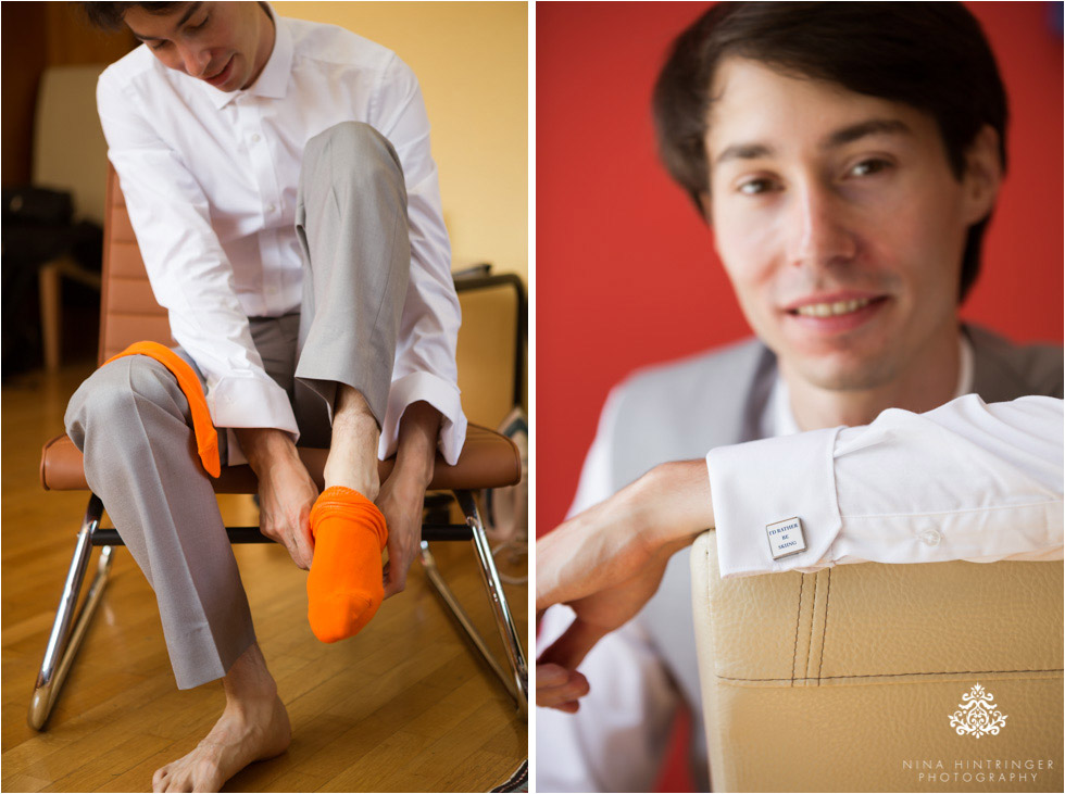Some of you might ask why a ski theme for a summer wedding? Actually the reason for this is rather simple: the couple, as well as the maid of honor and the best man all met at the Tyrolean Alps while working as skiing instructors. The bride is from Great Britain, the groom from the Netherlands, the best man also from GB and the maid of honor is from Austria but already married to another cool guy coming from the United States. Check out their socks, that easily tells something about their nationality.