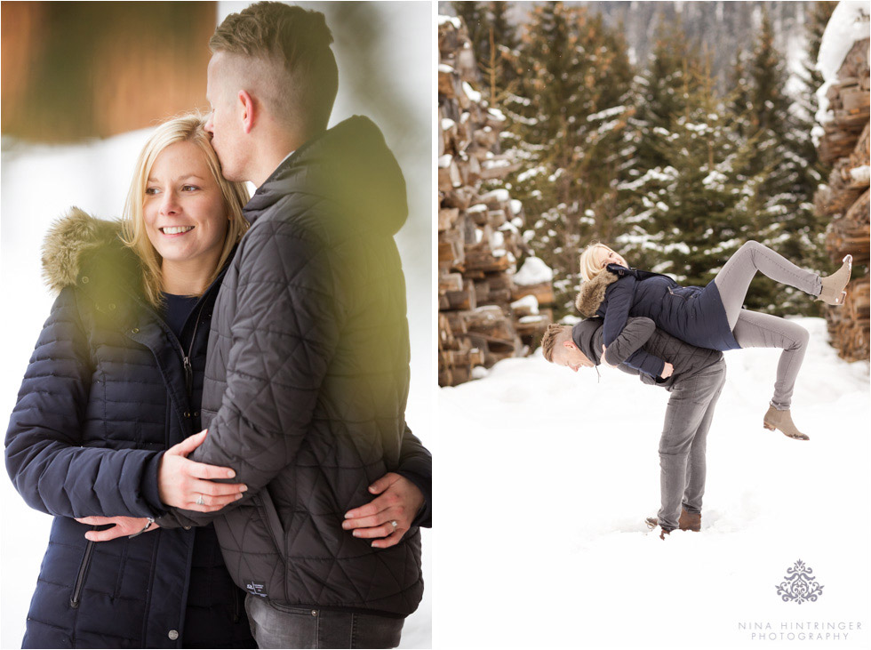 We are still having goose pumps when we think back to this week's snowy surprise proposal in St. Anton at the Arlberg. When Alex contacted us a while ago we were in on it right from the beginning. It's something really special if you get asked to join such a wonderful, intimate and once-in-a-lifetime moment. Thank you so much for your trust and for letting us be part of this special occasion. Alex organized everything perfectly and not just the proposal was a surprise, also the photo shoot. Jenny found out at the morning that a couple shoot will take place that day in their winter holiadys in St. Anton. You know that we girls are always a bit worried about hair and make-up when it comes to photos, so that was a smart way! This lovely couple has a great story: Alex is from Adelaide, Australia and Jenny from Germany. Jenny moved to Australia several years ago, there they both met through friends and a few years later they fell in love. Not too long ago they decided to move to Switzerland, there they enjoy their lives together at the moment. This week they spent in St. Anton at the Arlberg, Tyrol to snowboard. This holiday was perfect to pop THE question. We did a sleigh ride with these two lovebirds, started with the official couple shoot and as soon as Alex found the right place and was ready the special moment happened. We are always thrilled when we photograph a proposal and we almost press the shutter continuously. Alex and we were really relieved that it was a perfect surprise for Jenny and when you look at the photos I think you know what her answer was :) We wish you both all the best for your future togehter and we want to thank you again that we could be part of this adventure - with these photos you can tell many generations to come how you started your life as husband and wife! Wherever in the world your wedding will take place, just let us know - we would be more than happy to accompany you! Lots of hugs, Nina & Phil
