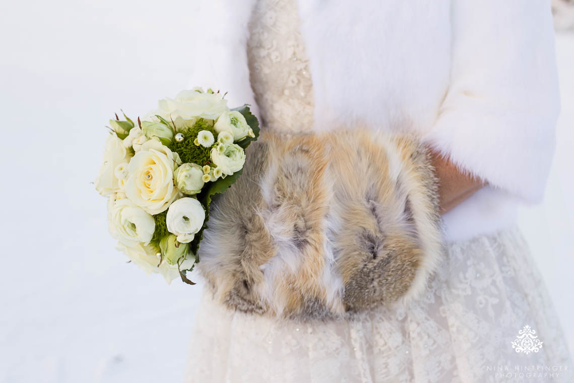 To avoid the frosty temperatures ruining the most beautiful day of your lives, choosing the right clothing is important. Simple things like stockings under the wedding dress or warm socks for the groom make a big difference. Having warm accessories like a scarf or gloves available are a good idea. Specifically, for the bridal couple photo shoot which often takes place on a snowy field a jacket or suitable shoes like a stylish pair of winter boots should be brought along.